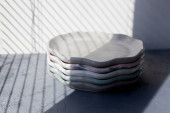 Zestaw kolorowych monochromatycznych kamiennych świec Uchwyt z abstrakcyjnych smug i serca i płyty, pęknięcia szary beton. Zastosowanie do siewników, doniczki i wnętrz wystroju. kopia Przestrzeń na tekst, selektywna miękka ostrość