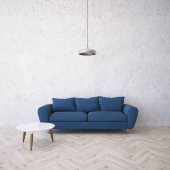 nowoczesny wystrój wnętrz z przytulnych, czarna sofa i oświetlenie