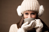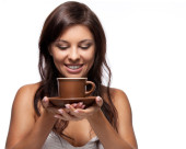 Puchar gospodarstwa biały piękna kobieta. na białym tle nad białym.