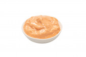 Sos w misce izolowane na białym tle.