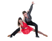 para mężczyzna i kobieta ćwiczenia fitness taniec na białe tło
