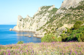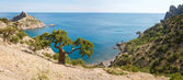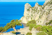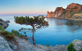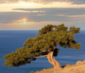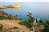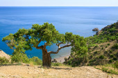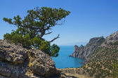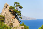 drzewo jałowca na skale na tle powierzchni morza ("Nowyj svit" rezerwa, Krym, Ukraina).