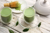 Zdjęcie "Kompozycja z filiżanką herbaty matcha na kolorowe drewniane tło" może być wykorzystywane do celów osobistych i komercyjnych zgodnie z warunkami zakupionej licencji Royalty-free. Obraz jest dostępny do pobrania w jakości wysokiej rozdzielczości do 5760x3840.