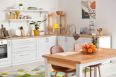 Zdjęcie "Stylowe wnętrze nowoczesnej kuchni" może być wykorzystywane do celów osobistych i komercyjnych zgodnie z warunkami zakupionej licencji Royalty-free. Obraz jest dostępny do pobrania w jakości wysokiej rozdzielczości do 5760x3840.