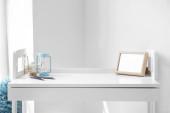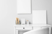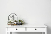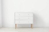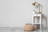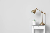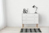 Nowoczesna komoda z lampą w pobliżu ściany światła w pokoju