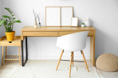 Nowoczesna komoda i krzesło w pobliżu ściany światła w pokoju