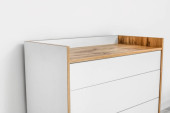 Nowoczesna komoda w pobliżu ściany światła w pokoju