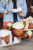 Smaczne świeże babeczki ze śmietaną stojącą na stole w przytulnej, jasnej kuchni w domu