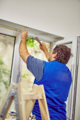 młody dorosły mężczyzna malarstwo na DIY budżetu renowacji jego nowego mieszkania.