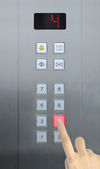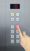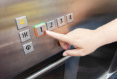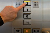 kobieta dotykając zawieszek wewnątrz winda