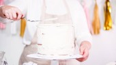 kaukaski cukiernik kobieta pokazując kawałek ciasta z czekolady krem wewnątrz