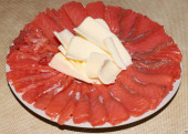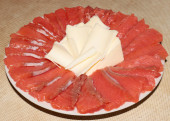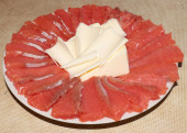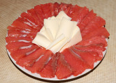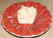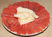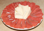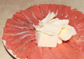 plasterki solonej czerwonej ryby i udział masła na talerzu