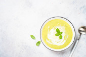 Zdjęcie "Zupa cukiniowa ze szpinakiem i ziołami w kolorze białym." może być wykorzystywane do celów osobistych i komercyjnych zgodnie z warunkami zakupionej licencji Royalty-free. Obraz jest dostępny do pobrania w jakości wysokiej rozdzielczości do 5760x3840.