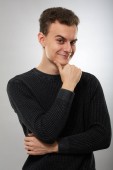 Portret białego mężczyzny z ramionami złożonymi na białym tle