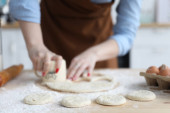 Mama i jej córka gotują w kuchni z mąką i jajkami