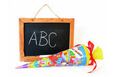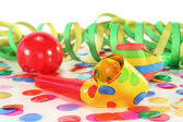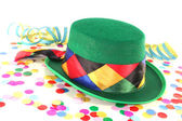 kapelusz karnawał konfetti i chorągiew na białym tle