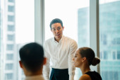 Zdjęcie "Biznesmen wyjaśniający coś biznesmence i trzymający filiżankę kawy. Zamknij zdjęcie przystojnego biznesmena rozmawiając z kobietą współpracownik w biurze z dużymi oknami" może być wykorzystywane do celów osobistych i komercyjnych zgodnie z warunkami zakupionej licencji Royalty-free. Obraz jest dostępny do pobrania w jakości wysokiej rozdzielczości do 5760x3840.