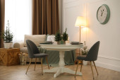 Fotel przy oknie w nowoczesnym pokoju. Projekt wnętrza