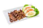 Głęboko smażona wieprzowina jelito cienkie lub wiewiórki narządy wewnętrzne świni służyć z pikantnym sosem