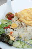 Widok krewetek smażony ryż, w restauracji lub kuchni ustawienie.