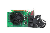 karta graficzna z trzech wyjść na białym tle