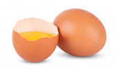 Pojedyncze brązowe jajko kurze izolowane na białym tle