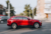 Ukraina, Kijów - 4 kwietnia 2021 r.: brązowy samochód Porsche Cayenne poruszający się po ulicy.