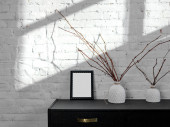 Zdjęcie "Szary skrzynia szuflada z wystrój i księga obok biały ceglasty ściana miejsce dla tekst. Projekt wnętrza" może być wykorzystywane do celów osobistych i komercyjnych zgodnie z warunkami zakupionej licencji Royalty-free. Obraz jest dostępny do pobrania w jakości wysokiej rozdzielczości do 5760x3840.