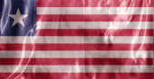 Liberiańska flaga powiewa na wietrze. Zbliżenie Liberia baner dmuchanie, miękki i gładki jedwab. Tkanina tkanina tekstury chorąży tło. Użyj go na dzień narodowy i krajowe okazje koncepcja.