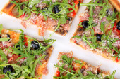 Zdjęcie "Pizza z rukolą na kolor drewniane tła" może być wykorzystywane do celów osobistych i komercyjnych zgodnie z warunkami zakupionej licencji Royalty-free. Obraz jest dostępny do pobrania w jakości wysokiej rozdzielczości do 5760x3840.