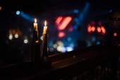 Płomienie w kominku elektrycznym zbliżenie. Wewnętrzne.