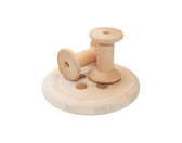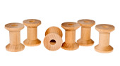 dwóch starych drewnianych szpul z wątku, na białym tle na białym tle