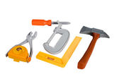 różowy poziom i młoteczek na białym tle biały ze ścieżką przycinającą