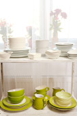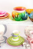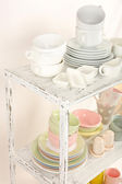 różne naczynia na półce, z bliska