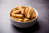 Warstwa lub paski Mathri lub mathiya jest popularny przepis przekąska, że ludzie lubią z herbatą w północnych Indiach