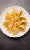 Indian Namkeen palak lub Methi Mathri kształt trójkąta lub Tikona - solone kozieradki lub liści szpinaku mieszane Krakersy