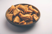 Warstwa lub paski Mathri lub mathiya jest popularny przepis przekąska, że ludzie lubią z herbatą w północnych Indiach