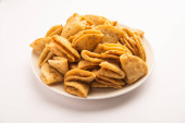 Warstwa lub paski Mathri lub mathiya jest popularny przepis przekąska, że ludzie lubią z herbatą w północnych Indiach