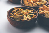 Zdjęcie "Indian Namkeen palak lub Methi Mathri kształt trójkąta lub Tikona - solone kozieradki lub liści szpinaku mieszane Krakersy" może być wykorzystywane do celów osobistych i komercyjnych zgodnie z warunkami zakupionej licencji Royalty-free. Obraz jest dostępny do pobrania w jakości wysokiej rozdzielczości do 5760x3840.