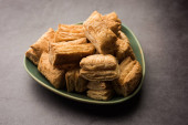 Zdjęcie "Mathri czy Mathiya w grupie. To popularna indyjska przekąska." może być wykorzystywane do celów osobistych i komercyjnych zgodnie z warunkami zakupionej licencji Royalty-free. Obraz jest dostępny do pobrania w jakości wysokiej rozdzielczości do 5760x3840.