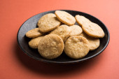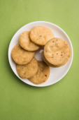 Zdjęcie "Mathri czy Mathiya w grupie. To popularna indyjska przekąska." może być wykorzystywane do celów osobistych i komercyjnych zgodnie z warunkami zakupionej licencji Royalty-free. Obraz jest dostępny do pobrania w jakości wysokiej rozdzielczości do 5760x3840.