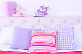 Drewniana taca z lekkim śniadaniem na łóżku