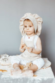 Portret kucharki ugniatającej ciasto w fartuchu i kapeluszu szefa kuchni. Gotowanie koncepcji stylu życia dzieci