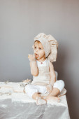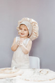 Portret kucharki ugniatającej ciasto w fartuchu i kapeluszu szefa kuchni. Gotowanie koncepcji stylu życia dzieci