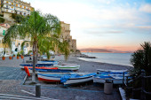 Neapol, Włochy, 01 / 08 / 2017. Ulica używana przez turystów do spacerów wzdłuż nabrzeża miasta.