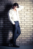 młody atrakcyjny człowiek w garniturze na szarym tle