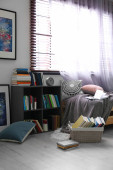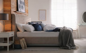Łóżko ze stylową pościel i miękkie poduszki w pokoju