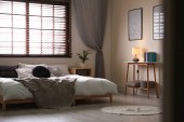 Zdjęcie "Łóżko ze stylową pościel i miękkie poduszki w pokoju" może być wykorzystywane do celów osobistych i komercyjnych zgodnie z warunkami zakupionej licencji Royalty-free. Obraz jest dostępny do pobrania w jakości wysokiej rozdzielczości do 5760x3840.