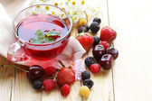 herbata owocowa latem z różnych owoców (wiśnia, truskawka)