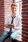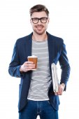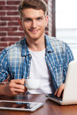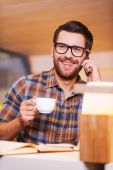Mężczyzna pijący kawę i rozmawiający przez telefon